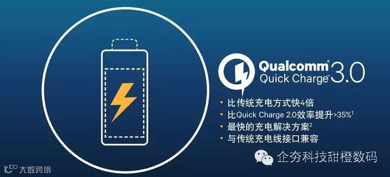 此外,高通骁龙652/650芯片还支持Qualcomm沉浸式音频,Hi-Fi 192kHz/24位音乐播放和低功耗骁龙语音激活功能;续航方面,高通600系列芯片优化了电量管理能力并支持Quick Charge 3.0技术,官方表示比传统充电方式要快4倍。