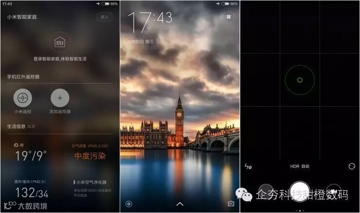 锁屏界面左侧滑动是智能家庭中心,右侧滑动是相机