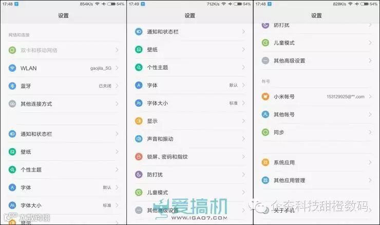 小米5搭载基于Android 6.0的MIUI 7.2稳定版,系统UI、响应速度和小米Note的差距不大,但滑动操作有Android6.0特有的柔顺感,流畅感会更好一些。