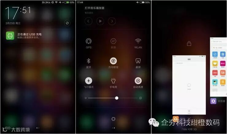 通知栏、通知栏快捷开关、多任务页面