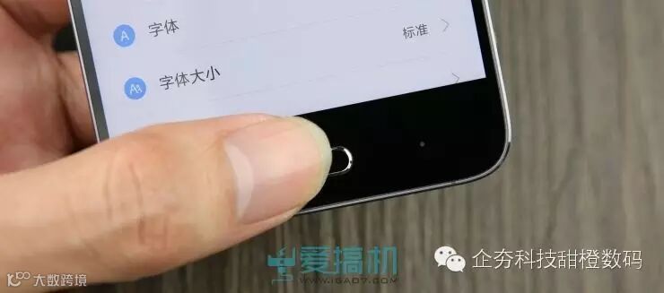 Home键支持指纹识别,表面为陶瓷盖板,光泽和触感和周边有细微的差别。两侧触控按键改为了点状背光,亮度较弱。
