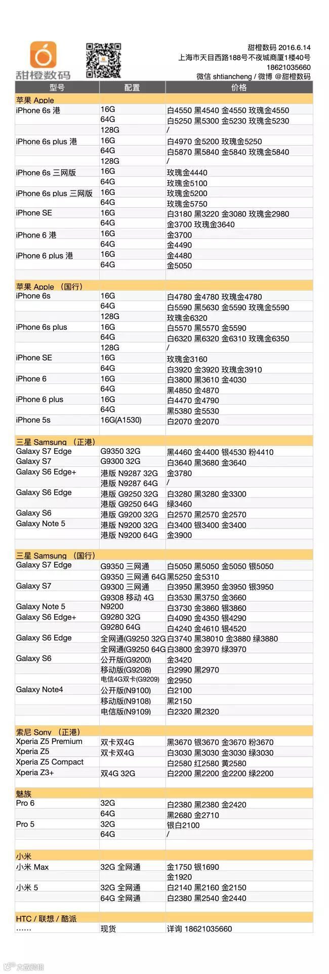 iPhone 6s 及 plus 港版国行版继续小幅波动,昨天下跌的幅度今天又还回去了……三星各款继续保持稳定;小米、魅族等国内品牌降价。