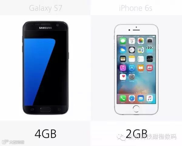 Galaxy S7装备了4GB内存,是iPhone 6s的两倍。