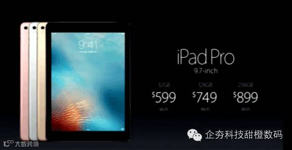 售价方面,9.7英寸iPad Pro 32GB版本售价为:599美元(折合人民币3882元);128GB版本售价为:749美元(折合人民币4854元);256GB版本售价为:899美元(折合人民币5826元)。该机于3月24日正式上市接受预定,3月31日开售,中国大陆与香港地区均位列首批上市地区名单中。