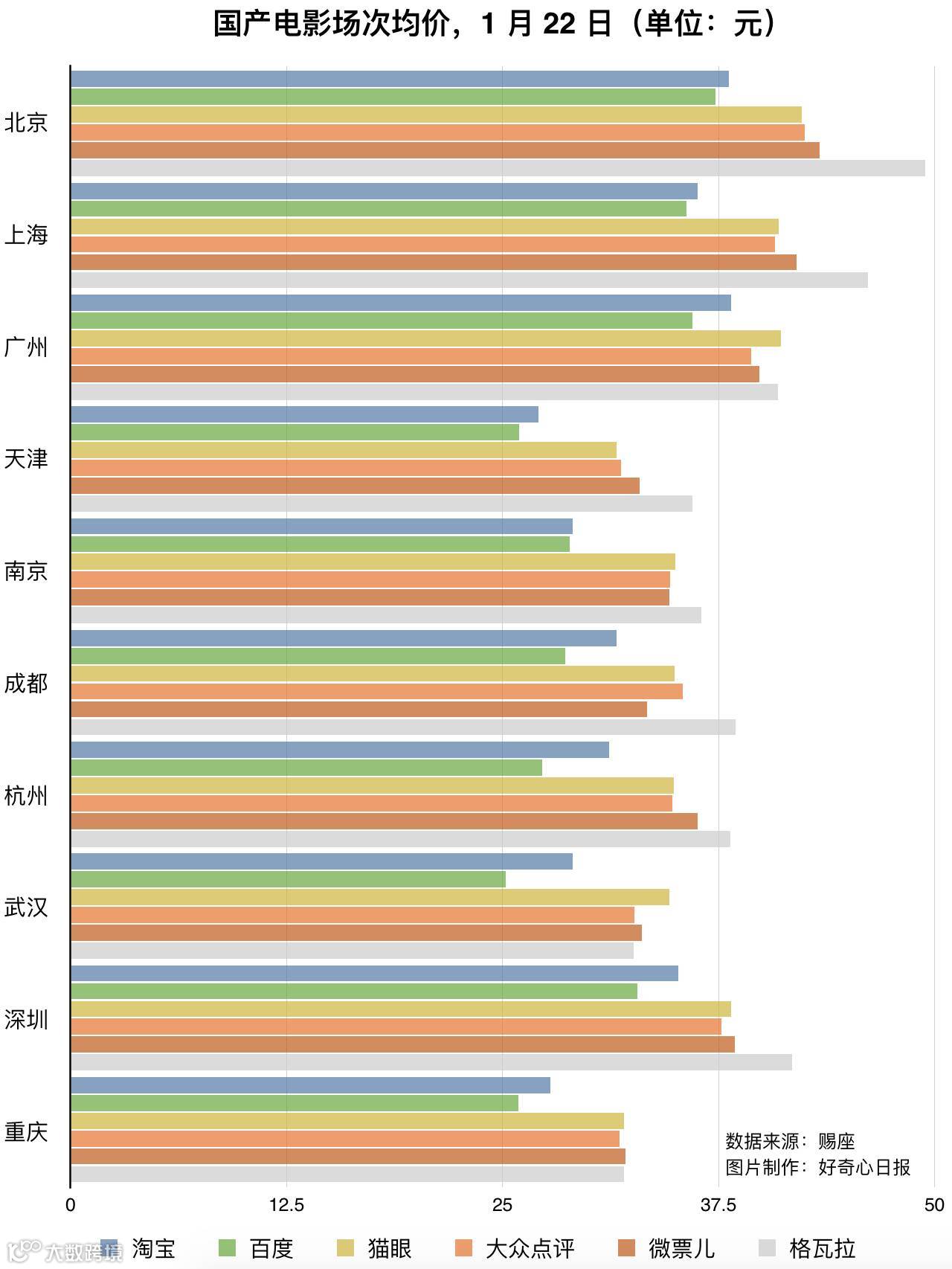 有一点需要说明的是,我们分析的数据并没有包括新用户专享价、特定支付方式立减十元之类的优惠,也没有包含新片上映时可能与购票应用合作的那种“9.9 元看电影”的特惠价格。