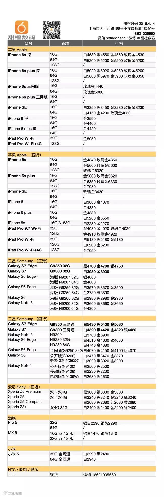 今天港版三星 Galaxy S7 和 S7 Edge 大幅度降价,降幅接近 150 元,S6 系列和 Note 5 也有 50-100 元降幅;索尼港版 Xperia 系列许久没有动静,今天大幅降价近 100 元;iPhone 6s 及 plus 稳定。