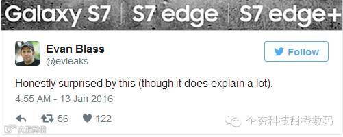而更具体的消息从来自Twitter上的爆料称,三星将在2月21日举办自己的发布会,也就是MWC正式开幕的前几天。另外除了2月20日或21日之外,还有说法声称三星有可能会提前发布Galaxy S7,比如1月下旬或2月初等。