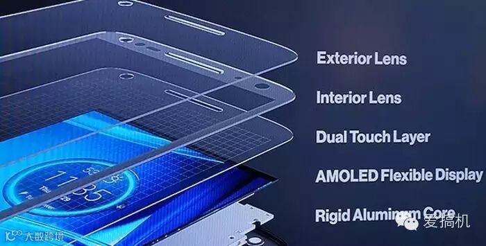 ShatterShield 这个技术,一言而蔽之,就是没有玻璃。总共有 5 层结构,都是为了提高耐用性而专门设计的:第一层是铝合金底板,然后是在上面的柔性 AMOLED 显示面板;紧接着是双重触摸层,其中一个坏了,第二个会立刻顶替上防止触控失灵;在向上就是被称为“interior lens”起到保护作用的光学透明层,最后还在外面加上高强度的“exterior protective lens”加强防护。这样的设计保证了 Droid Turbo 2 在多次掉落后屏幕毫发无损,能完美地继续工作,甚至从 5 英尺(约 1.5 米)的高度掉落与混泥土地面亲密接触也没有任何损坏。
