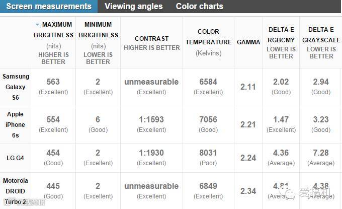 (Droid Turbo 2 与别家机型屏幕对比)