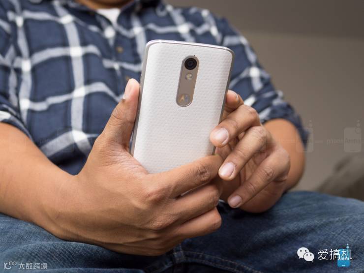 后背有三角形的压花纹路,加上采用塑料的材质使得 Droid Turbo 2 不容易沾染指纹或者污迹,这样的设计能让机器在受到冲击时有一定的缓冲,增加耐用性。