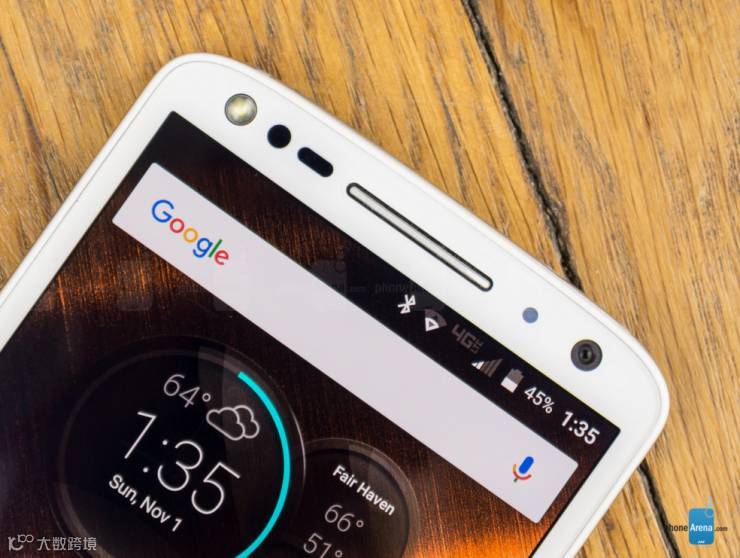 显示效果是典型的 AMOLED 特性:过饱和的色彩,可视角度广和完美的黑色显示。尽管 sRGB 色域不准确,色温倒是不错的 6849K,实际观感有点偏黄。手动调节最高亮度为 315 尼特,而在自动模式下可以飙到 445,虽然还是比不上 Moto X Pure Edition。