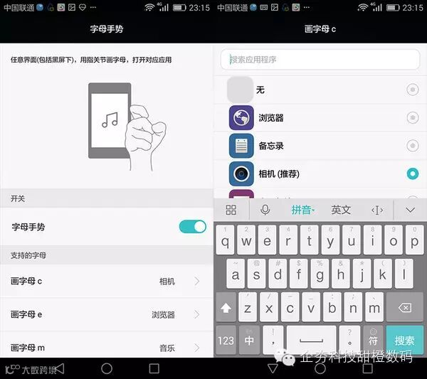 华为Mate S的手势操作是设置了几个固定支持字母,然后可以自定义对应字母调用的app,十分便捷。说实话第一次拿到手机体验体感操作时,略微显得有一些凌乱。手势太多,一是难以记住,在想使用的时候反而要想想该如何使用这些手势。而当一段时间习惯之后,便觉得手势确实带来了不少方便。 总的来说华为Mate S的手势体感操作反应十分灵敏,在日常使用时方便了许多。