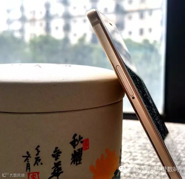 侧面,弧形背部的机身设计,让华为Mate S机身最薄的边缘处厚度仅有2.65mm;同时正面和背面的侧边框,采用了钻石高光切割,使机身侧面的线条更优雅,金属光泽质感以及冰凉细腻的手感,让手机看起来更加高端。在实际手感中,确实能感觉到华为Mate S更贴合手掌。最厚的地方不过7mm出头,而机身两侧的最薄处则压缩到2.65mm。握起来感觉相当舒服有质感,同时又不会有割手的感觉。另外金属手机普遍存在多段式拼接,在机身侧面某些地方会有凹凸感,而Mate S的侧面处理的非常平滑,手指划过一顺到底,可见华为的设计师们做了大量功课的。