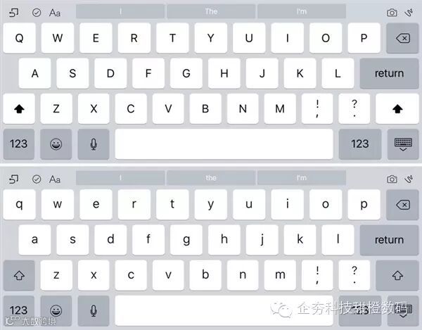 SHIFT功能键又变了,激活后本身变黑的同时所有字母都变成大写,关闭后本身变透明同时字母全部小写。iPad上还有一些新的编辑控制键和双指手势,可将键盘变成触摸板。
