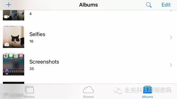 iOS 9为照片应用增加了单独的自拍(Selfies)、截屏(Screenshots)文件夹,前者自然是保存前置摄像头的照片了。