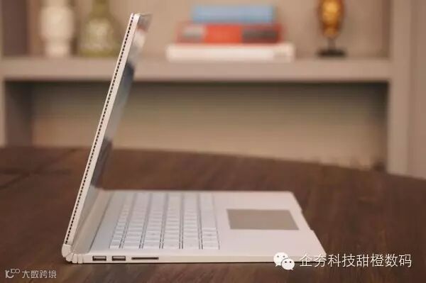 在发布会上,或许你对726g和7.7mm的数据印象比较深刻,听上去Surface Book轻薄性非常卓越。然而详细脑补一下你就会发现这个数据与Surface Book整机其实不可能匹配,实际上这个数据仅仅是平板的参数。如果说整机的话,那将远远大于这组参数。整机厚度达到22.8mm,重量也足有1.51kg,虽然想比带有独显的主流机型,这个数据已经出类拔萃,但是若要与那些没有独显的轻薄产品相比(比如Surface Pro 3、MacBook Air 13),依旧是没有优势的。