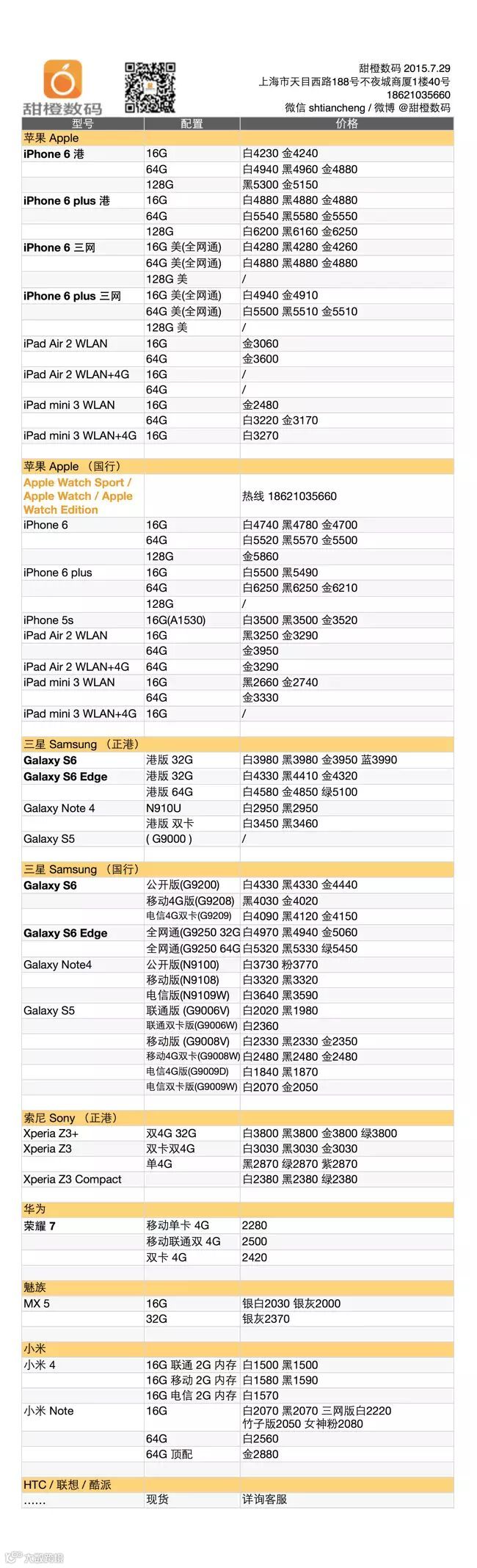 三星 Galaxy S6 和 S6 Edge 在前几日港版不断下探之后,今天国行版也来挑战底价,无论直屏或是曲面屏均有不小降幅;次旗舰 Galaxy Note 4 和 S5 也有小幅松动;iPhone 6 及 plus 的港版继续保持一些小幅度的波动,美版小降 10 元。