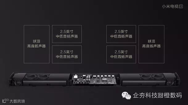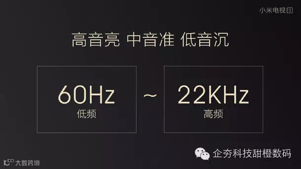 小米电视3配备2个球顶高音+4个2.5英寸中低音扬声器,低频低至60HZ,高频高至22KHz;新增自动音量平衡,避免换台声音忽大忽小;由格莱美声学大师亲自调音。