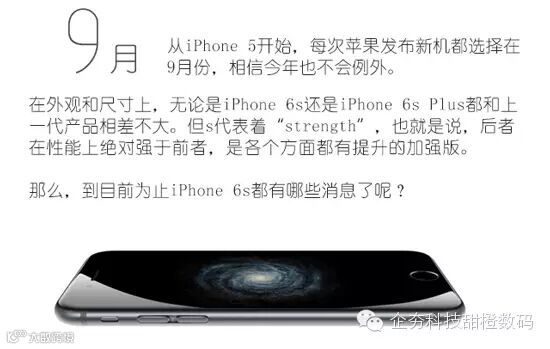 导读:据消息称,iPhone 6s将在今年9月发布,新一代产品和上一代产品外观变化不大,但无论是性能还是功能都有巨