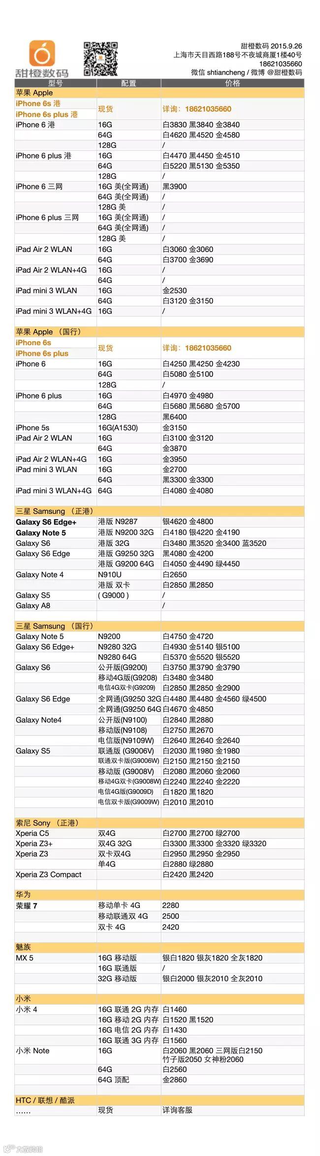 iPhone 6s 及 6s plus 首发,报价基本是加价 3、500 也有人抢,价格乱象估计会持续个几天;由于 6s 系列的价格波动,iPhone 6 和 plus 的价格也是起伏不定,今天反弹 3、50 元;Galaxy S6 系列也有小涨。