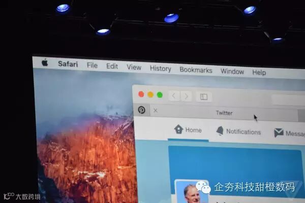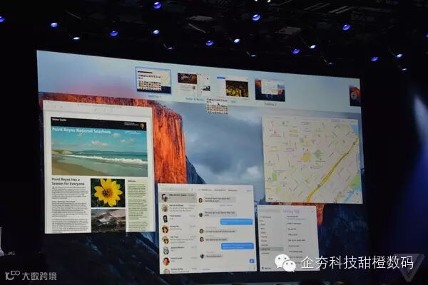 Craig首先修了几个新系统的中与压感触摸板相关的特性,比如:用力压鼠标会瞬间变大;在Safari的标签上向左划即可实现固定标签页的效果;改进的搜索可以识别简单的语句(“被我忽略的来自Phil的邮件”)。Craig着重展示了Mac中的拖放功能,比如从默认邮件程序中拖放照片进正在编写的邮件草稿中,从Safari直接拖放链接进邮件中,邮件会自动抓取网页标题和摘要以及缩略图,也可将窗口拖放至顶栏实现后台全屏。