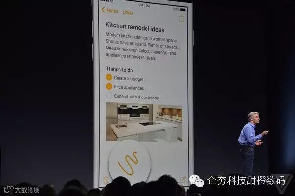 iOS 9中的note(备忘录):现在,除了在备忘录中加入复选框提醒、还能识别笔迹(作简笔画),可以粘贴截图——没错就像电子邮件那样。