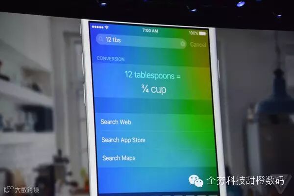 对Siri的更高要求是Proactive,在Spotlight搜索时提供更详尽的搜索建议,为了能让搜索更好的支持第三方程序,苹果首次开放了搜索相关的API接口。演示环节里,Craig展示将某条短信通过语音指令直接转换成提醒;插入播放设备时锁屏界面自动出现音乐推荐;主屏向右划进入搜索界面之后搜索“土豆”,搜索结果来自一个名为Yummly的菜谱软件,以及维基百科的若干条结果,也可以在搜索框中搜索计量,可以直接显示多少杯;通过语音直接搜索具有特定地理标签或事件的一组图片,Craig搜索的是与WWDC相关的。