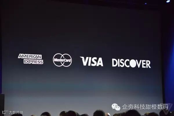 iOS9中的Apple Pay:美国四家发卡机构——美国运通、VISA、万事达以及DISCOVER都已经支持Apple Pay,并且已经有超过100个品牌或商家支持苹果支付。