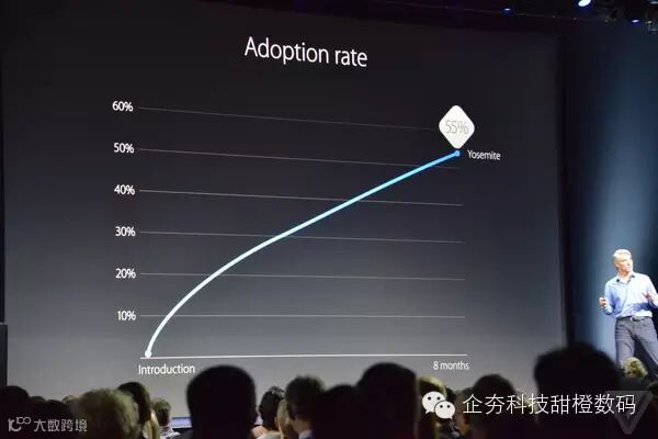 一年一度的苹果开发者大会(WWDC)现在终于开始了,来看看苹果“献了”什么宝。会议主题以OS X和iOS以及watchOS系统为主。首先,苹果负责系统项目的Craig列出数据显示,有55%的Mac用户使用Yosemite,新系统的接受度远超过可怜的Windows 8.1。OS X的新版本名为EI Capitan。