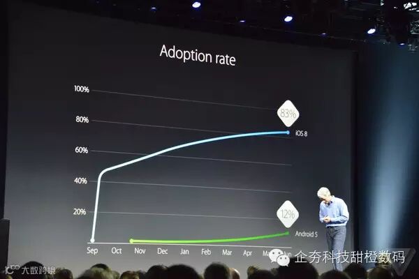 Craig给出的数据显示过去一年里有83%的iPhone用户使用iOS 8,相对的,只有12%的用户用上了Android 5.x。iOS中的Siri每周要处理10亿次的请求,准确率相比前一年提高了40%,苹果在人工智能上的努力并未停止。
