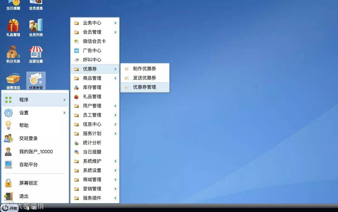 《开始》 → 《程序》 → 《优惠券》 → 《优惠券管理》