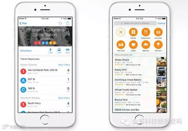 这是一个显著的提升,比如随时获取公交、火车、地铁、轮渡等公共交通工具的线路导航和实时位置等,还有利用 Transit 快速找到出站口和进站口,指导用户快速进出车站。这些功能在 iOS 8 上并不支持,而且在中国,Transit 方式将适用于超过 300 个城市!