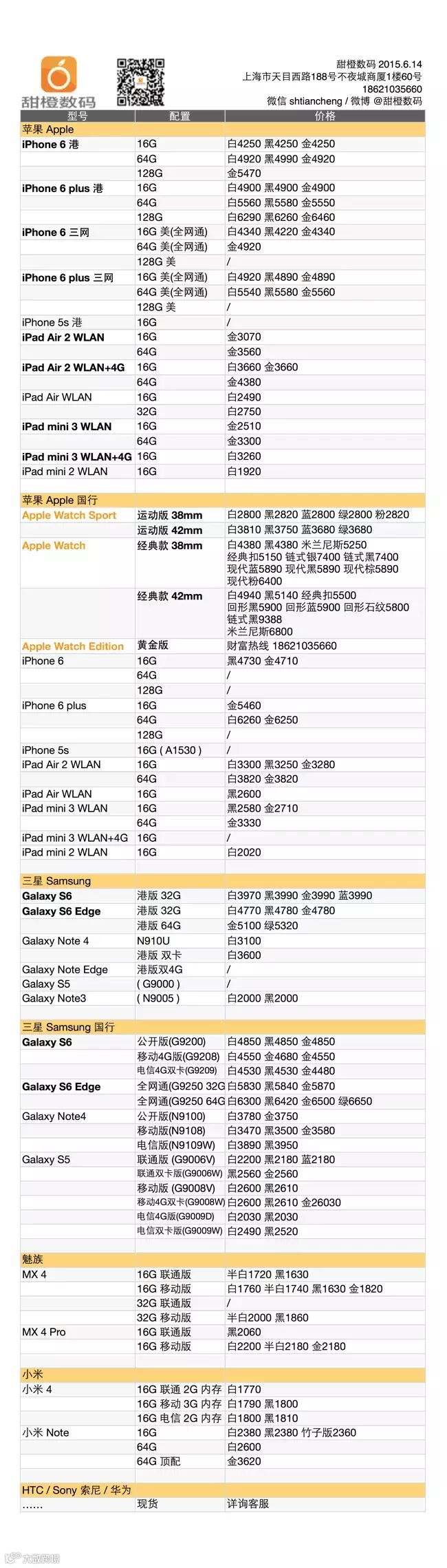 国行版 iPhone 6 及 plus 大量缺货,美版也是急速反弹态势,唯有港版稍显稳定;三星 Galaxy S6 Edge 价格处于低位稳定状态,S6 小幅反弹了 10 元左右;iPhone 5s 大面积缺货;iPad 系列继续保持稳定。