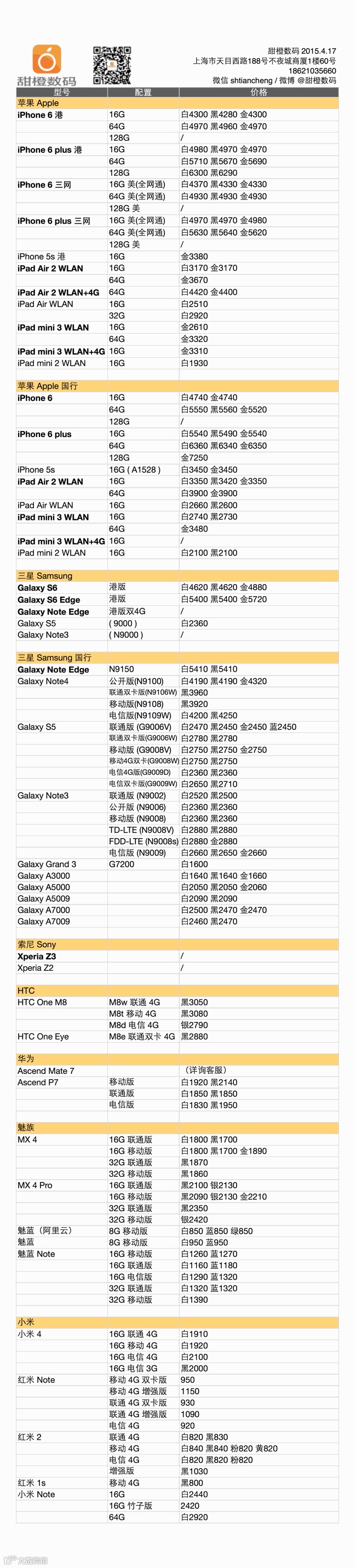三星最新款旗舰机型 Galaxy S6 和双曲面屏的 Galaxy S6 Edge 港版均已到店,价格为 4600 和 5400 起,详见报价单;受此影响三星各款 Galaxy 手机均有降价;iPhone 6 及 plus 的港版和国行今天也降价 50 元左右创新低,美版小跌 10 元。