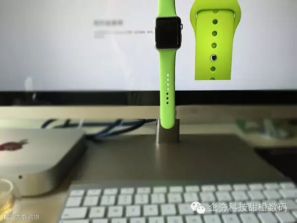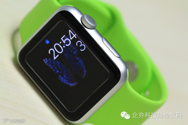 那么 Apple Watch 需要贴膜吗?因人而异吧。平时 Apple Watch 要么在手上戴着,要么放床头充电,刮刮碰碰的可能性不大。但是谨慎的用户无论 Apple Watch 采用什么材质都阻挡不了他们给爱机贴膜。贴膜后的效果是这样的(下图),如果要把 Apple Watch 当时尚配饰就别贴膜了。