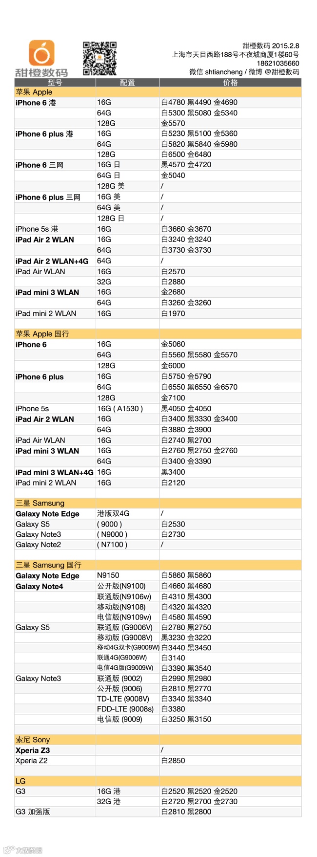 iPhone 6 及 plus 的反弹今天告一段落,大部分型号均有 1、20 的回落,国行版稳定,日版持续小涨,美版无货;三星 Galaxy Note 4 是唯一的上涨型号,Galaxy Note 3 和 Galaxy S5 均稳定;iPad Air 2 和 iPad mini 3 有小幅反弹。