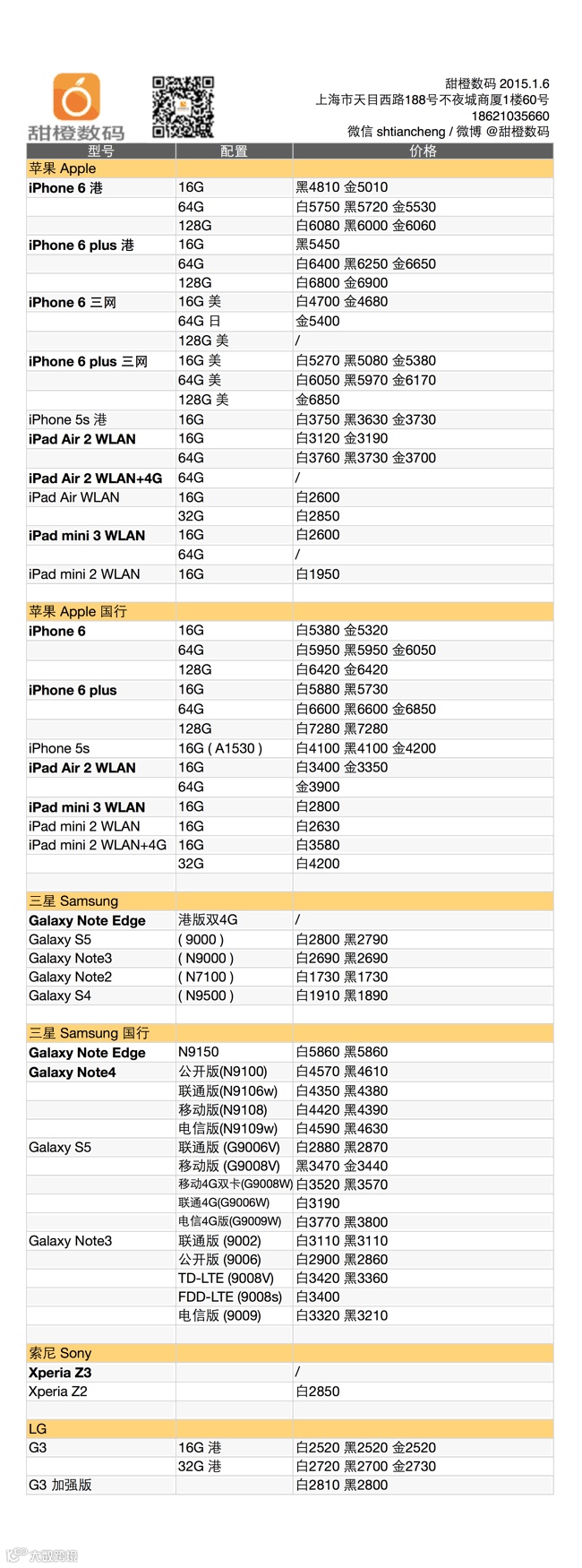 除 iPhone 6 64G 港版有小幅反弹外,今天其余的 iPhone 6 及 plus 均有松动,包括了国行、三网版;iPhone 5s 出现了意料外的小反弹;iPad Air 2 和 iPad mini 3 稳定;三星各款 Galaxy 设备也没有变化。