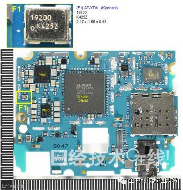 PCB#1显示屏侧的水晶器件由京瓷提供。日本占有全球约一半份额,体现了日本企业实力