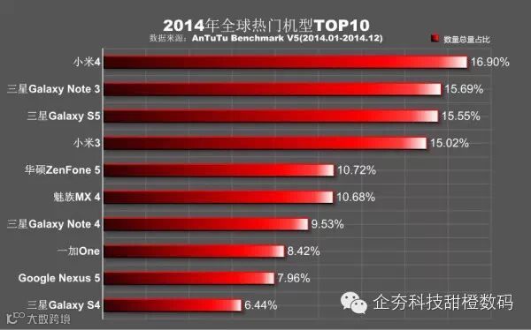 2014年全球热门机型小米4占得先机,在排行榜上占据第一的位置,但主要贡献是国内的用户。三星成为最大的赢家,共有4款机型上榜,由此可见三星在全球各地区智能手机的普及程度。国产品牌在排行榜中占据三个位置,地位有所提升。从全球榜单来看,在Android手机领域,三星的份额依旧最大,后起之秀的表现也毫不逊色,有赶超之势,不过依旧有差距,希望明年会看到更多国产机型上榜。