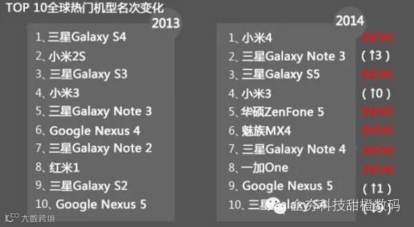 从以上榜单可以看出,一共有6款机型是最新进入榜单的,三星的机型相比去年从5款缩减成4款,特别是三星Galaxy S4下降最快,但两次出现在排行榜中也代表了三星机型的热销程度。总的来说,三星在全球热门手机的地位依旧不可撼动,国产品牌数量开始增加。