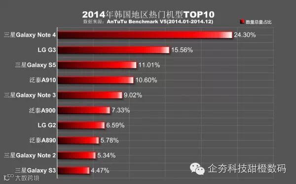 韩国地区的热门手机全部都是自家的本土品牌,三星/LG/泛泰,虽然有一款Google Nexus 5,但也是LG代工的,泛泰这个品牌虽然在中国听说的人较少,但在韩国,其地位不可忽视,在LG和三星强烈打压下还有两款机型上榜,实属不易。