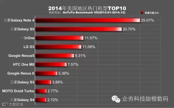 2014年度各个地区热门机型区别比较大,国产品牌在2014年的表现整体比较突出,其中一加手机在国外地区的成绩非常不错,这对于国产品牌是一个积极的信号。韩系品牌虽然机型的占有率下降,但在国际市场上的份额依旧稳固,日系品牌中只有索尼一家苦苦支撑。六个地区中排名最稳固的是Google Nexus 5,虽然是2013年发布的机型,但人气居高不下。2015年智能机市场的竞争将会更加激烈,如何在市场上占有自己的一席之地将是各大厂商值得思考的问题。