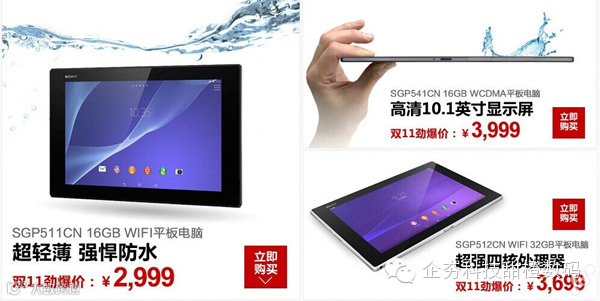 索尼平板电脑Xperia Z2 Tablet (16GB)从原来的3088元降到2999元,16GB WCDMA版则从4088元降至3999元,32GB WiFi版也从3788元降到了3699元。降价幅度并不算很大。