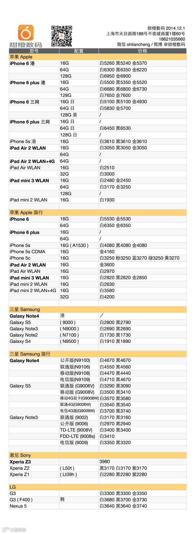 由于周末销量走高,iPhone 6 及 plus 港版的行情出现反弹,涨价主要集中在 16G 版本;三网版和国行较为稳定;iPad Air 2 和 iPad mini 3 近期稳定;三星等其他品牌也是许久没有变化了,市场的焦点目前都集中在 iPhone 上。