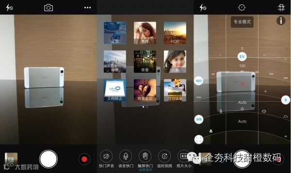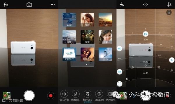 拍照界面方面,由于二者都是vivo出品,所以拍照的界面和功能也都是大同小异,二者最大的不同就是Xshot的手动模式下,允许用户调节的参数范围更大,拿ISO来说,Xshot在手动模式下用户可以选择最高3200的ISO值和最长32秒的曝光时间,而X5 Max手动模式的最高ISO值仅为1600 ,手动曝光快门时间最长也只有1秒而已。