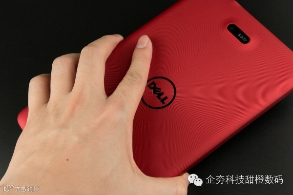 似乎各家厂商对于通话平板都不大用心,基本是定位于中低端产品,而这样的设定也使得大部分产品在硬件配置以及外形设计上都有很大的妥协。特别是外形设计,往往通话平板都显得千篇一律。而比较有意思的是,Dell Venue 8就显得特别的多了,其背面使用的是同行圆设计,并且不是平面。同心圆除了提供立体感与设计感之外,对于握持的稳定性也有很大帮助。此外Dell Venue 8提供红色的选择,也让其增添不少美感。