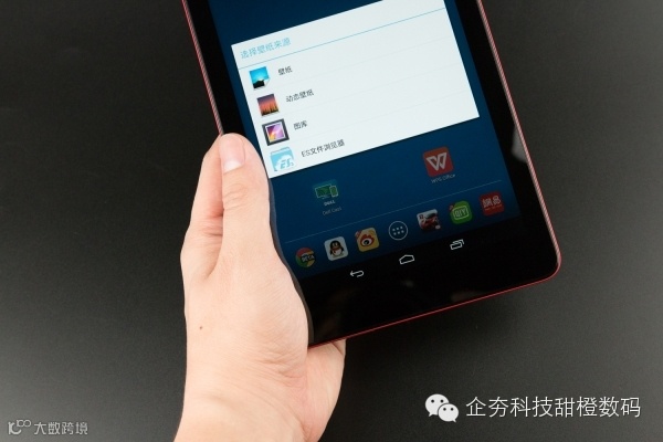 Dell Venue 8使用的8英寸屏幕加上较为一般的边框宽度,使得使用起来双手握持是相当习惯的事情了。而Dell Venue 8的338g重量还算较为可以接受,并且明显收敛的圆润边框也对握持有很好切合。此外更为重要的是,上文中提到的被背面设计更让握持时的手感与稳定感更好。