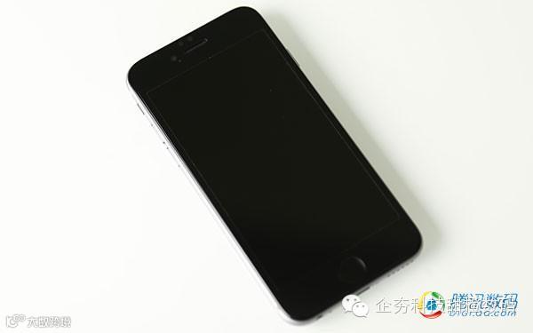 这种贴膜的思路很简单,避开周围的弧面区域就好了,把膜做的只有平面区域那么大,贴起来自然是能和屏幕无缝贴合,但是缺点是实在太丑了...如果是超薄的塑料膜还好,如果你选择了钢化玻璃膜,那就是下图的这个效果,逼死强迫症的典型。不少商家给这种膜也加了个弧度,想要让这个弧度和iPhone 6边缘的弧度连起来,但是效果非常不明显。当然啦,由于这种简单粗暴的处理方式还是挺符合贴膜本身属性的,这种膜贴上够结实,不容易掉,除了被放弃的弧面,屏幕其他地方的保护还是足够的。手感方面也还好,没有特别奇怪。