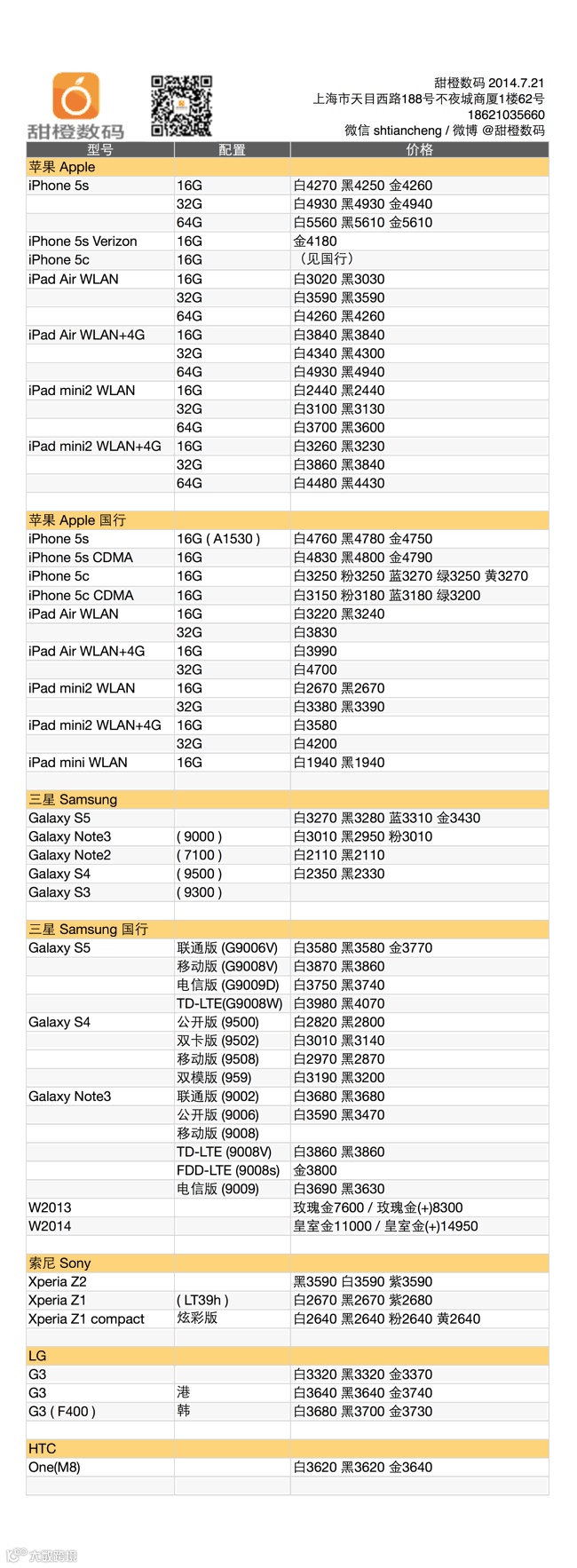 三星 Galaxy Note3 有明显波动,涨跌不一;而 Galaxy Note2 则是一路走跌的态势,适合出手的时机已出现;iPad mini2 和 iPad Air 的 WLAN 版有小降;iPhone 5s/5c 稳定。高温酷暑天,大家要注意防暑降温哦。