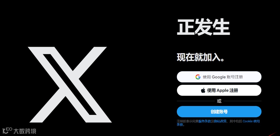 访问推特官网,点击页面上的 “注册” 按钮。